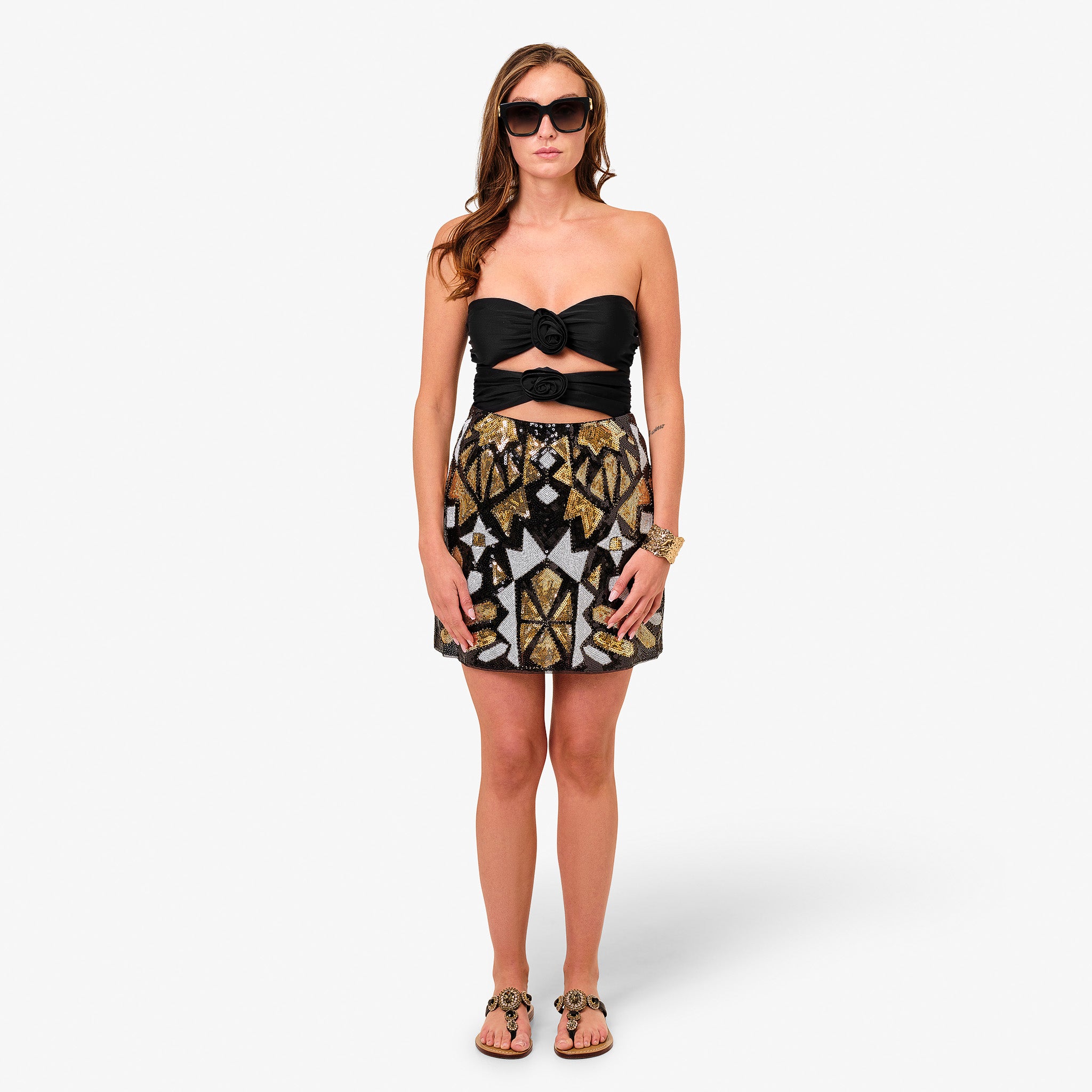 A true showpiece. With rose appliqués and daring cut-outs, this swimsuit brings sculptural drama and high-fashion energy to your swimwear collection.