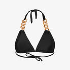 Chic and confident, this bikini top features elegant gold chain straps that bring a bold twist to your classic beach look. Designed for both support and style.