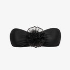 Romantic with a twist. This bandeau bikini top is detailed with a dramatic black rose, perfect for poolside lounging with a touch of couture.