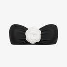 Chic and timeless with a romantic twist. This bandeau top features a statement white rose that adds softness and style to any beachside look.